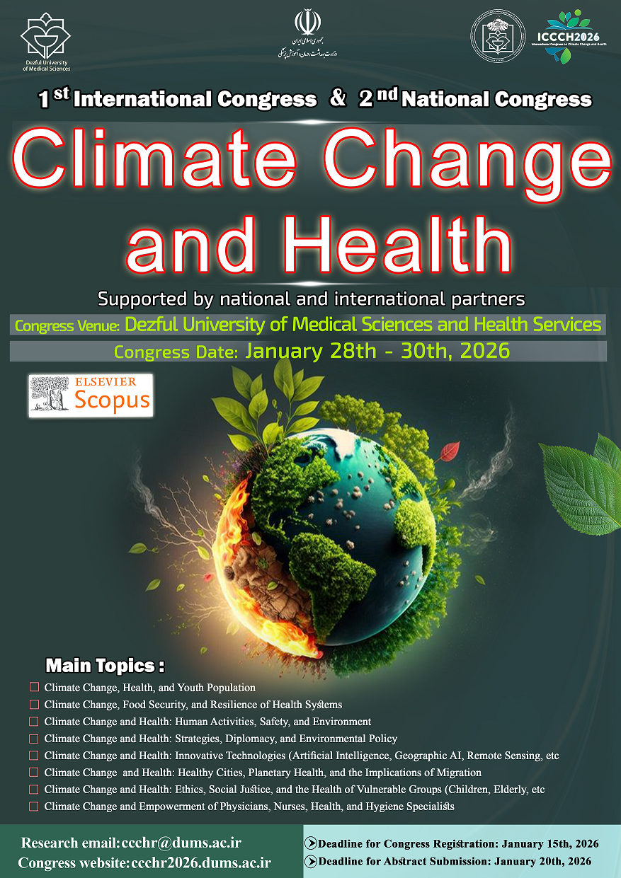 Climate change is one of the most pressing global health threats, contributing to rising health problems, food insecurity, poverty, and instability. Iran, like many other countries, faces these challenges. To address the risks associated with climate change, advancing scientific research is essential. In this regard, Dezful University of Medical Sciences, with the support of the esteemed Secretariat for Health and Food Security, is organizing the 2nd National and 1st International Congress on Climate Change and Health. This event aims to foster scientific development in this field and encourage researchers to explore the impacts of climate change on health.