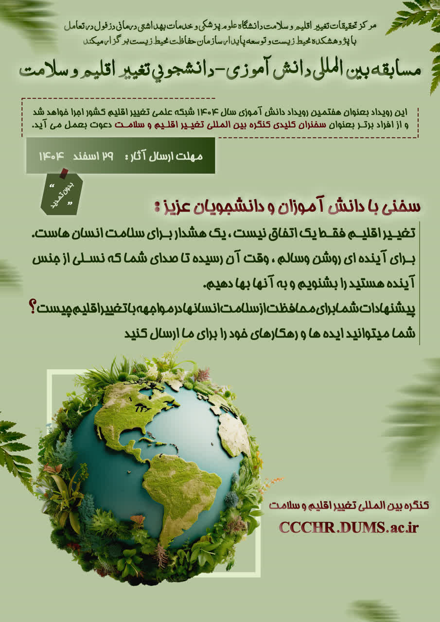 اطلاعیه در خصوص برگزاری کنگره تغییر اقلیم و سلامت دانشگاه علوم پزشکی دزفول